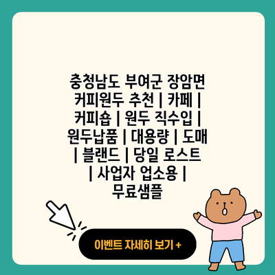 부여군 장암면 주변에서 원두 납품과 도매를 전문으로 하는 업체들이 있습니다. 이들은 대용량 구매가 가능하며, 사업자 대상으로 저렴한 가격에 원두를 제공합니다.